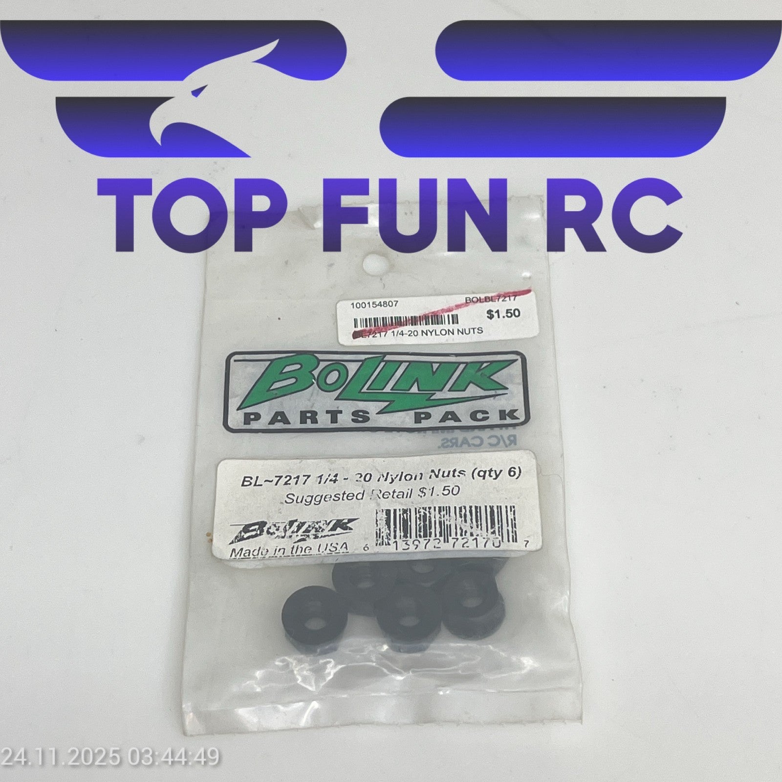 BOLINK BL7217 1/4-20 NYLON NUTS (6) FOR VINTAGE 1/12 SCALE RC VEHICLES