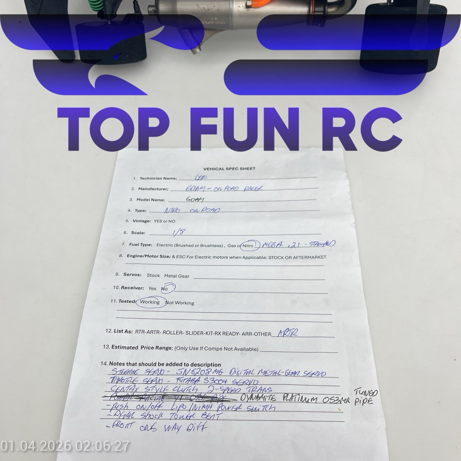 EDAM ON ROAD RACER 1/8 SCALE NITRO RC CAR