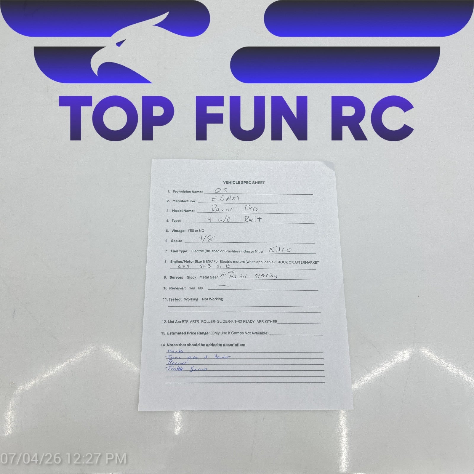 EDAM RAZOR PRO 4WD BELT DRIVEN 1/8 SCALE NITRO RC VEHICLE OPS .21B POWERED