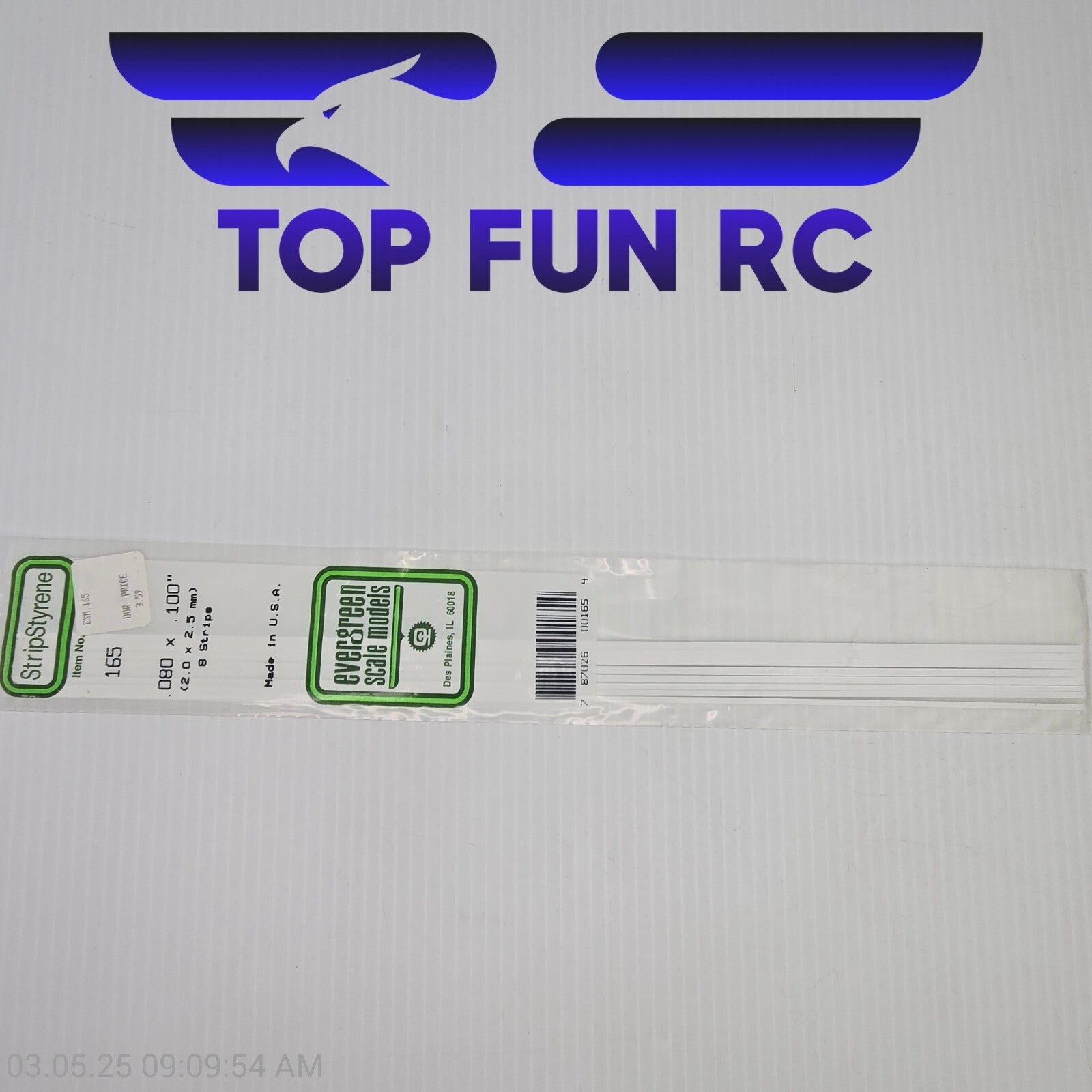 Evergreen Scale Models 165 .080" x .100" x 14" Polystyrene Strips (Pack of 8)