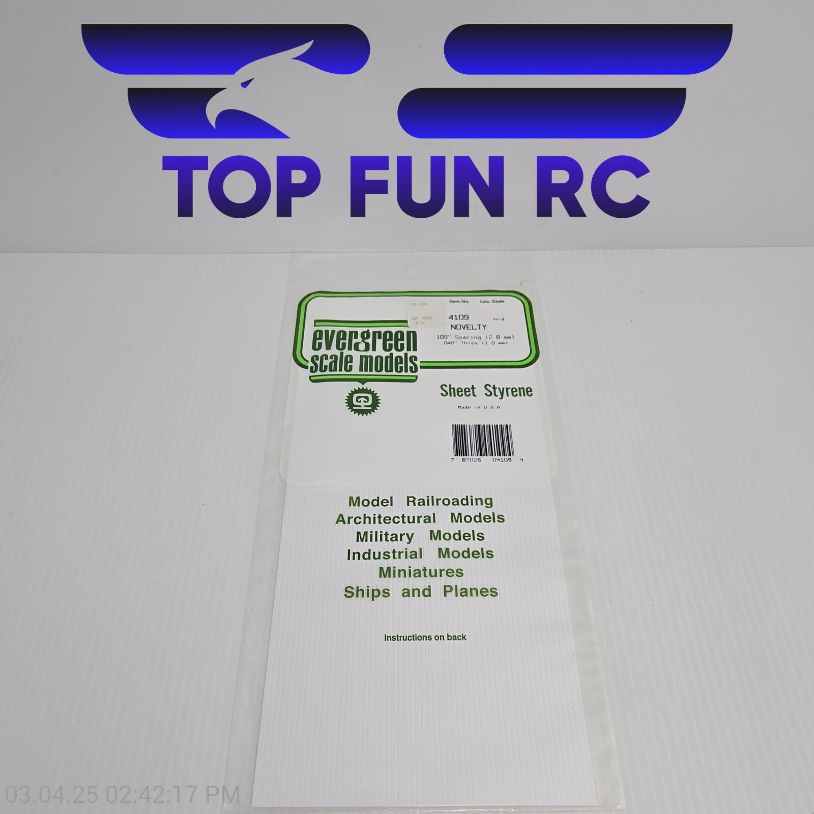 Evergreen Scale Models 4109 .040" x .109" x 6" x 12" Polystyrene Novelty