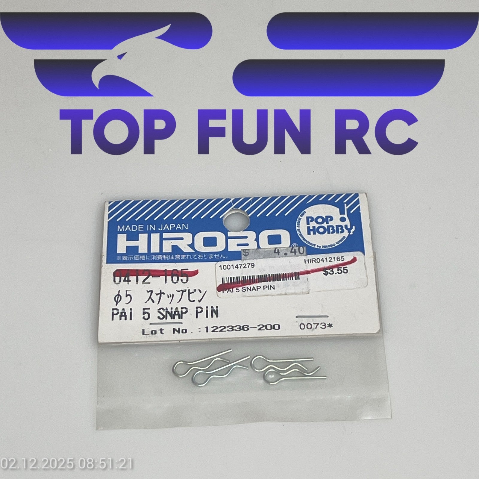 HIROBO 0412-165 PAI 5 SNAP PIN FOR HIROBO SCEADU & SDX HELICOPTER