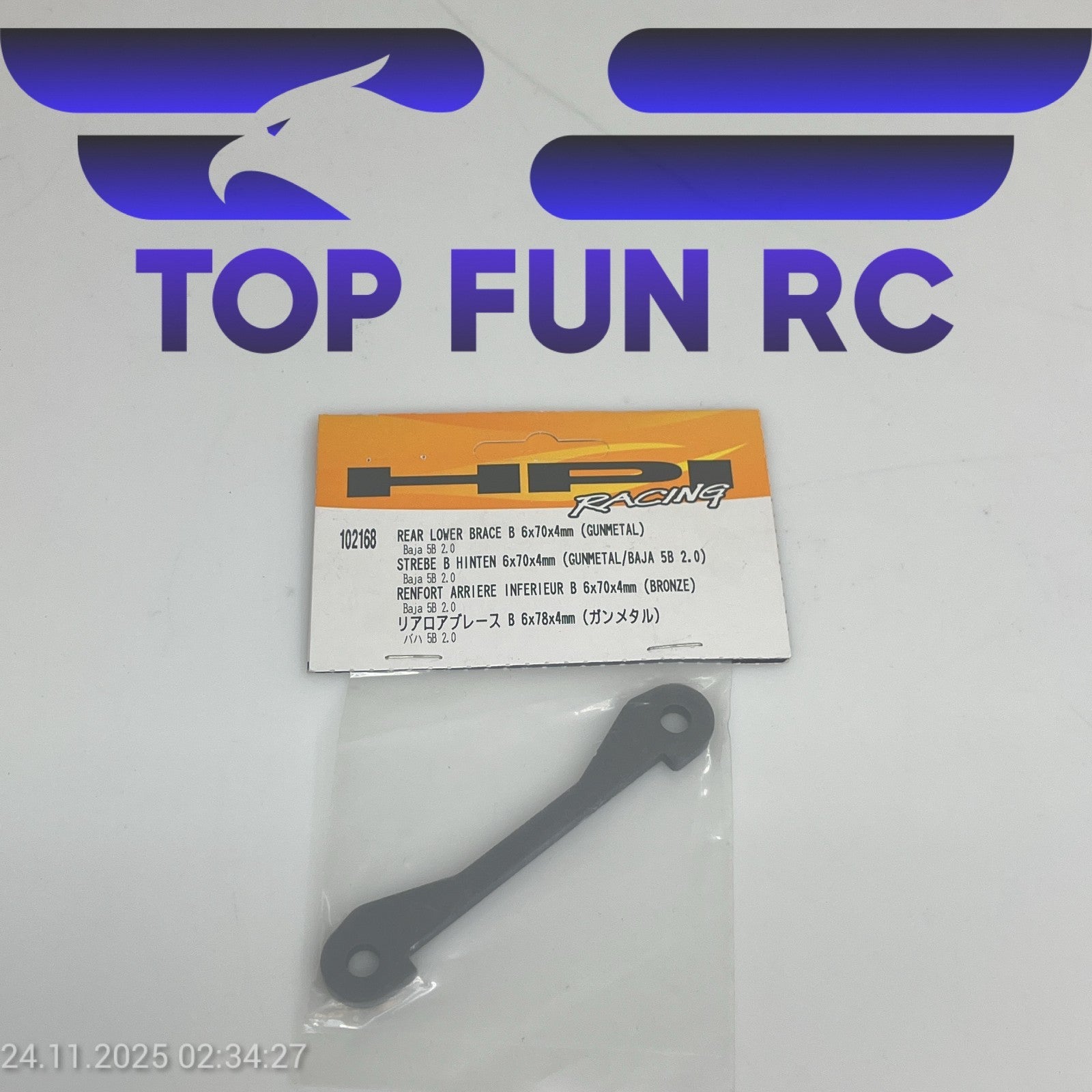 HPI 102168 REAR LOWER BRACE B 6X70X4MM (GUNMETAL) FOR BAJA 5B 2.0 1/5 SCALE