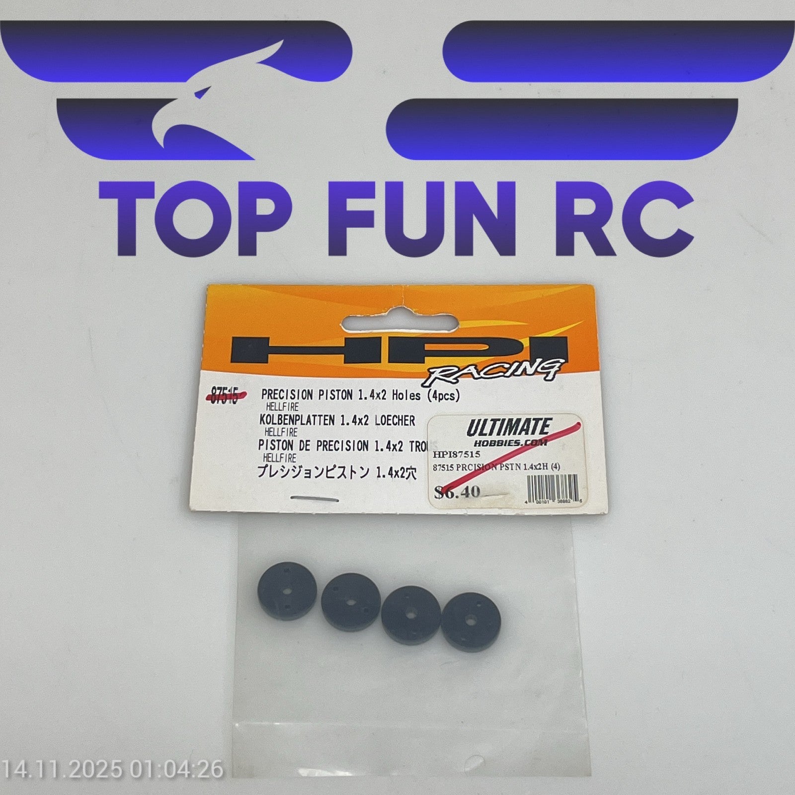 HPI 87515 PRECISION PISTON 1.4X2 HOLES (4PCS) FOR HELLFIRE 1/8 SCALE TRUCK