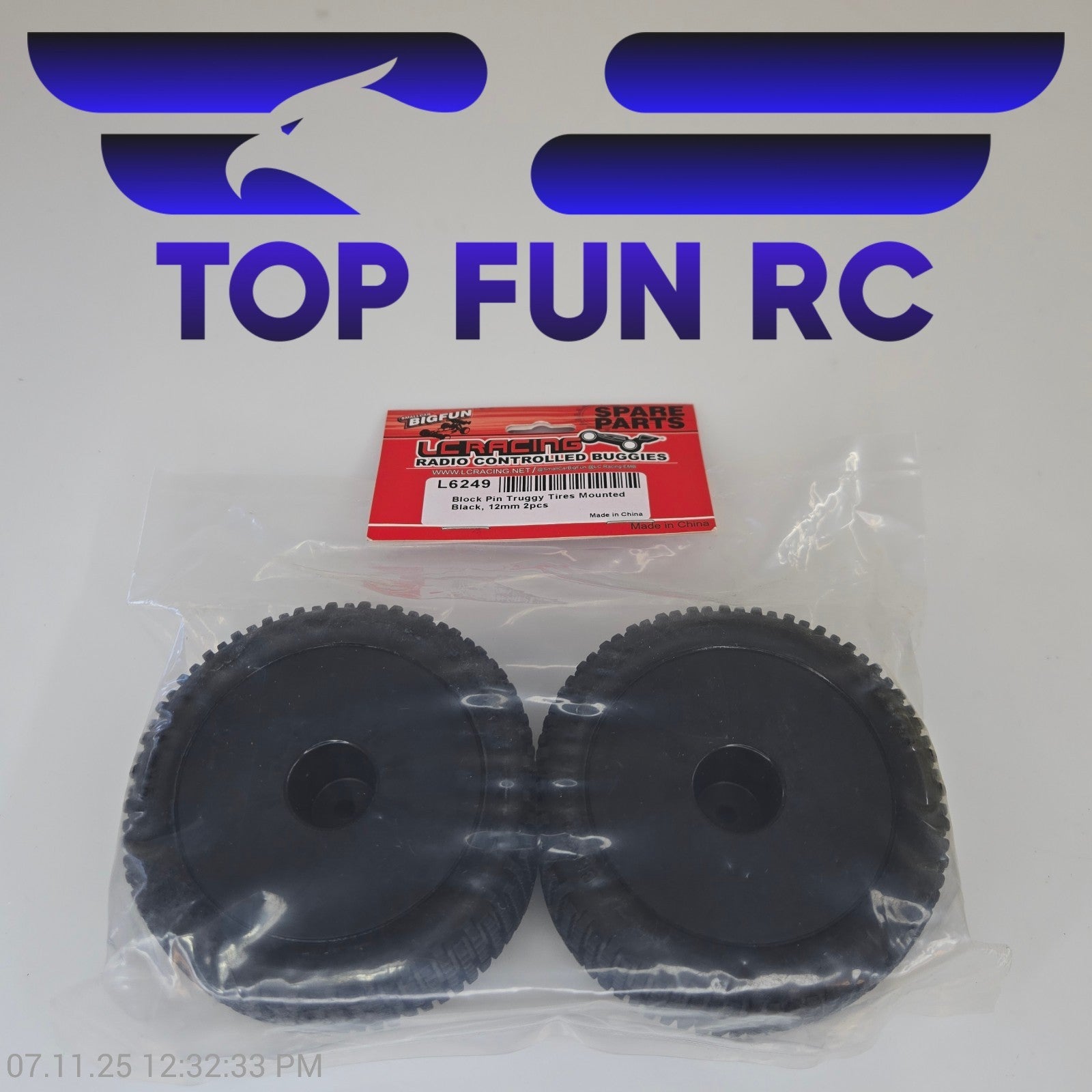 LC Racing L6249 Block Pin Truggy Tires Mounted Black 12mm (2pcs)