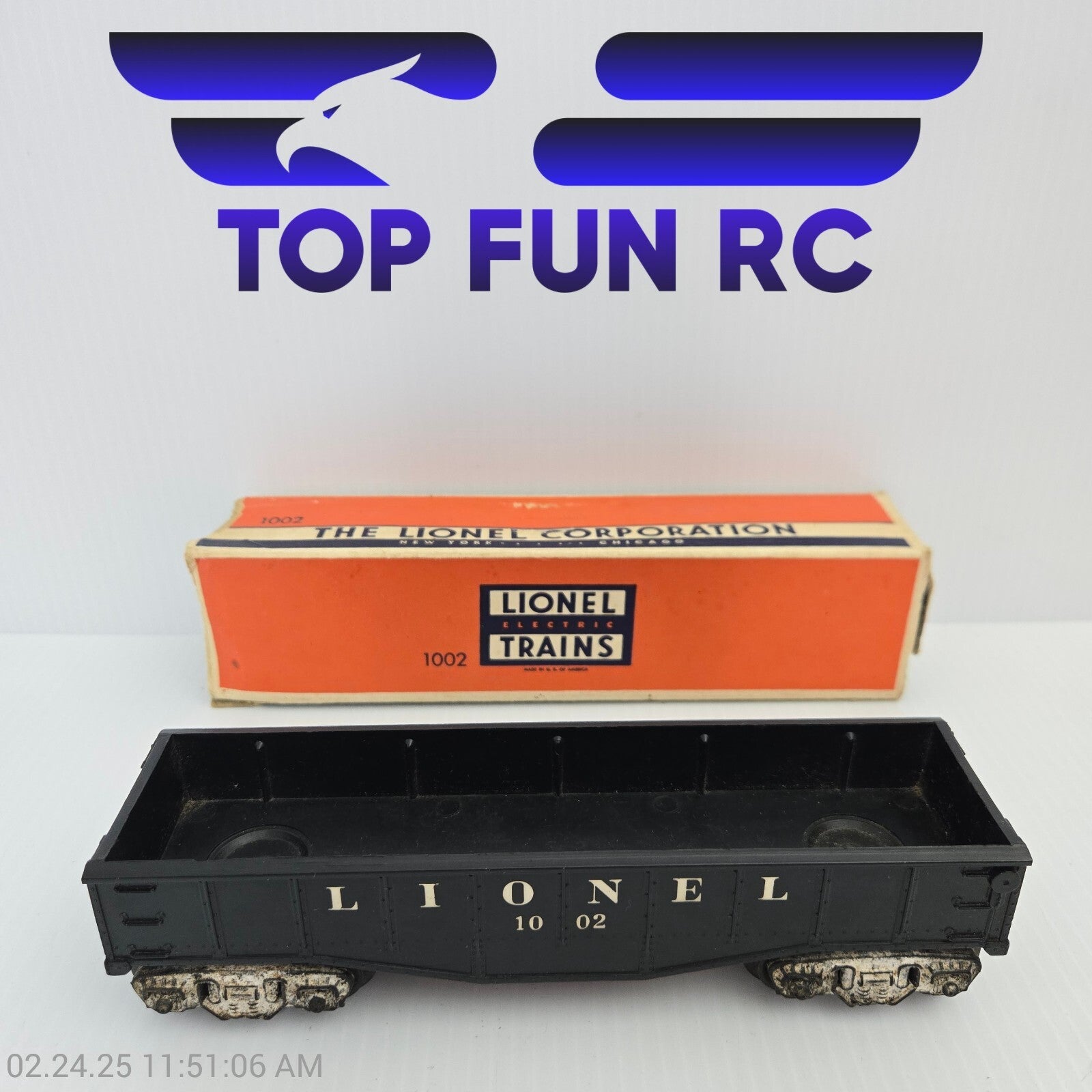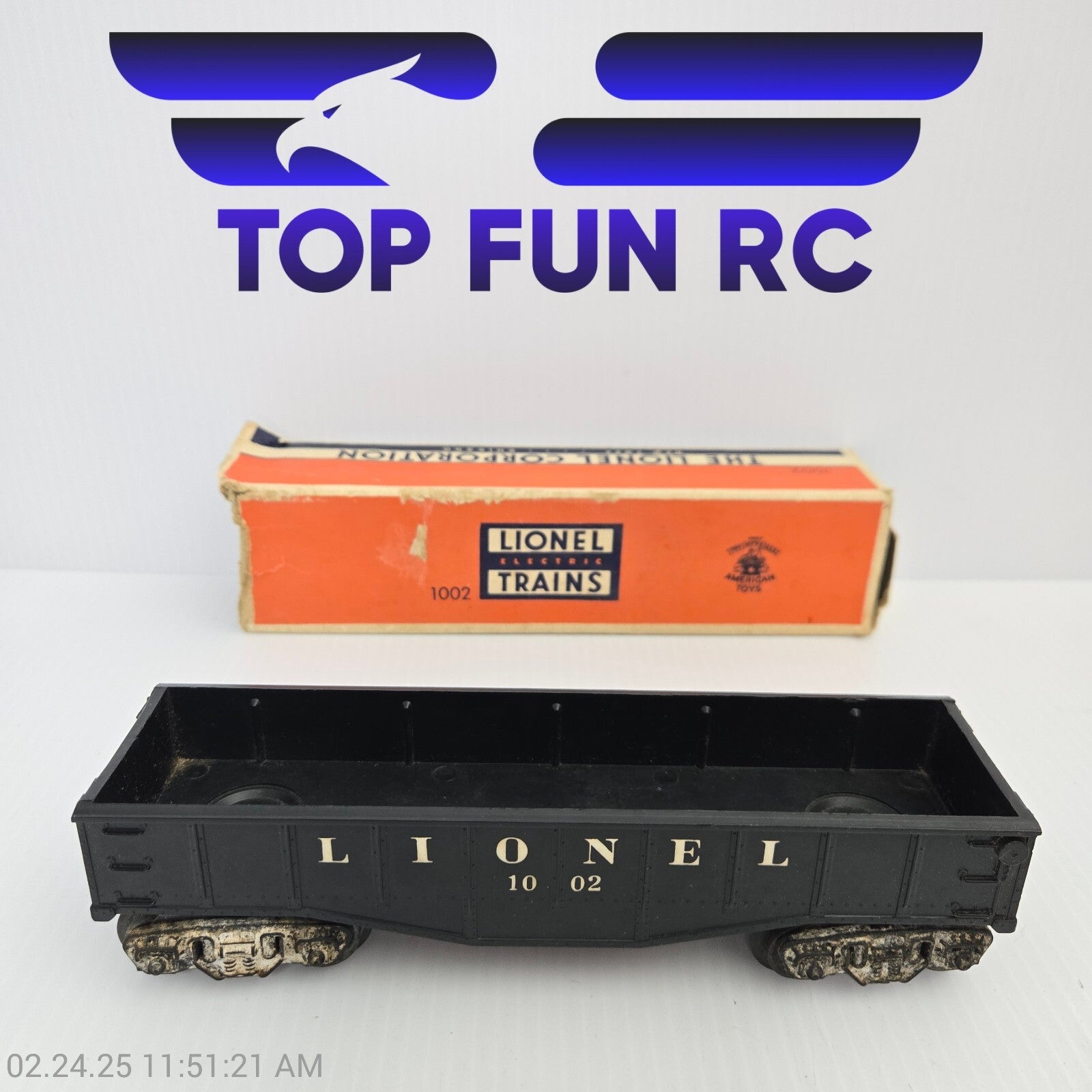 LIONEL O-GAUGE 1002 GONDOLA CAR BLACK W/ ORIGINAL BOX MODEL RAILROAD CAR