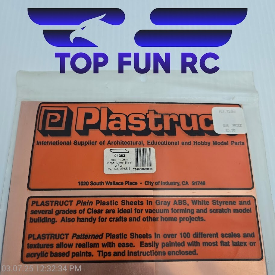 Plastruct 91363 Copper Mirror Sheet .040” 4x12” Universal