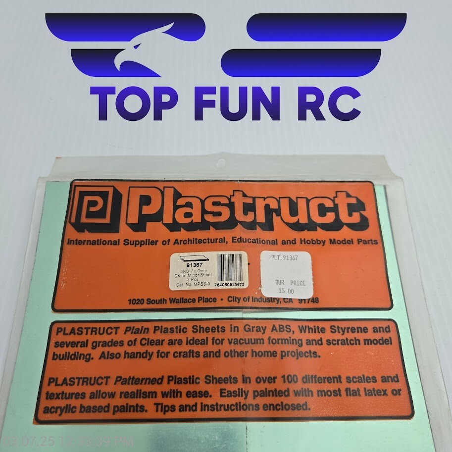 Plastruct 91367 Green Mirror Sheet .040” 4x12”