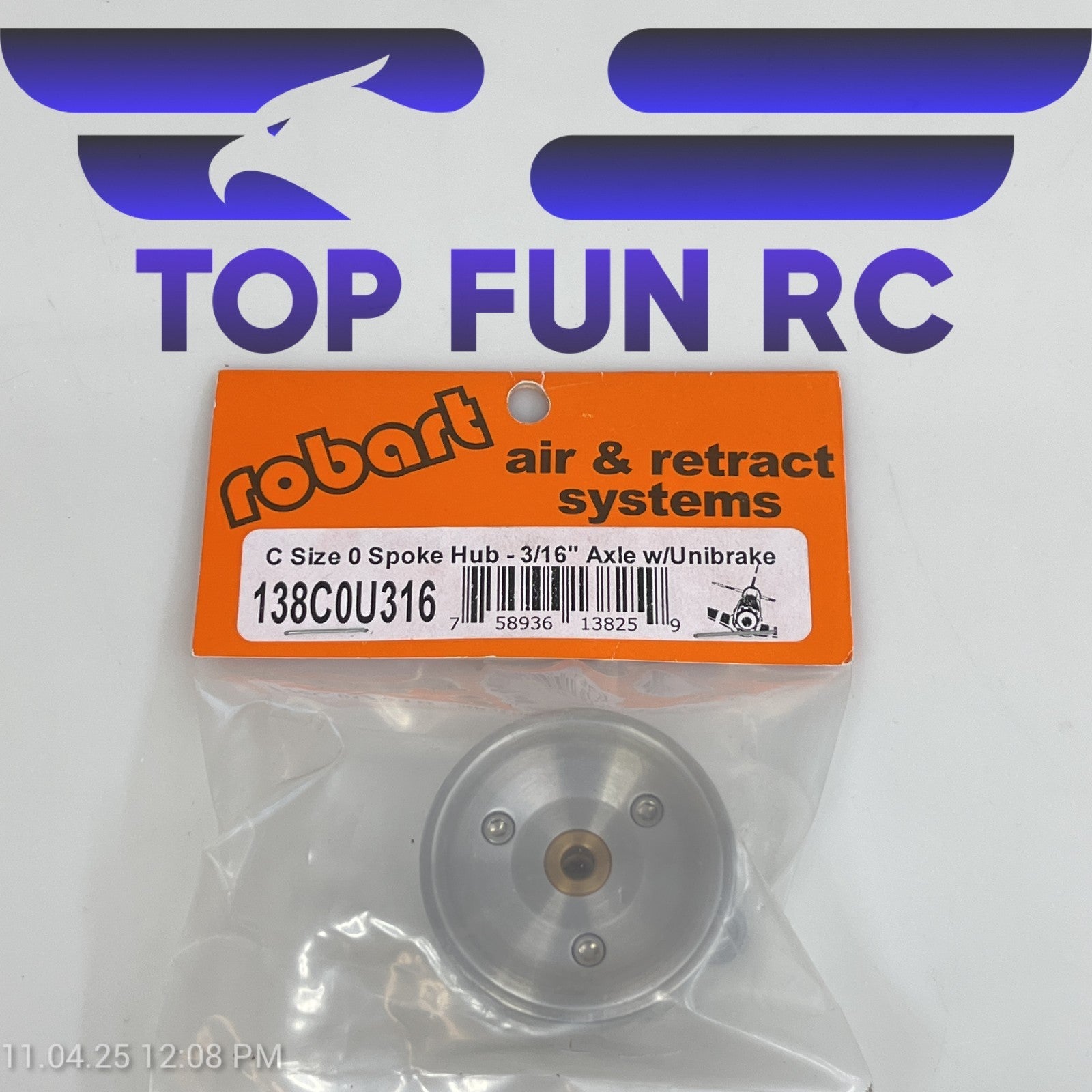 ROBART 138C0U316 C SIZE 0 SPOKE HUB FOR RC AIRPLANES W/ 3/16" AXLE W/ UNIBRAKE