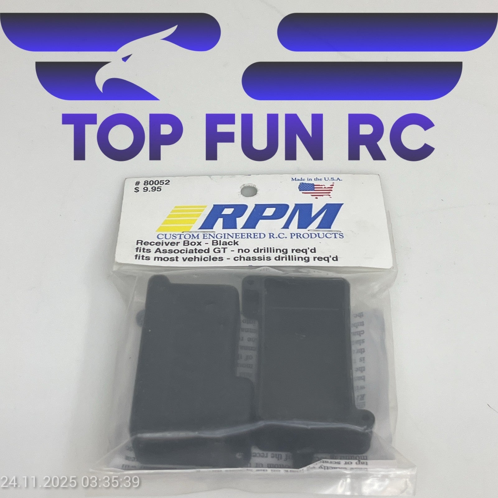 RPM 80052 RECEIVER BOX FOR ASSOCIATED GT FITS MOSTED VEHICLES CHASSIS DRILL REQ.