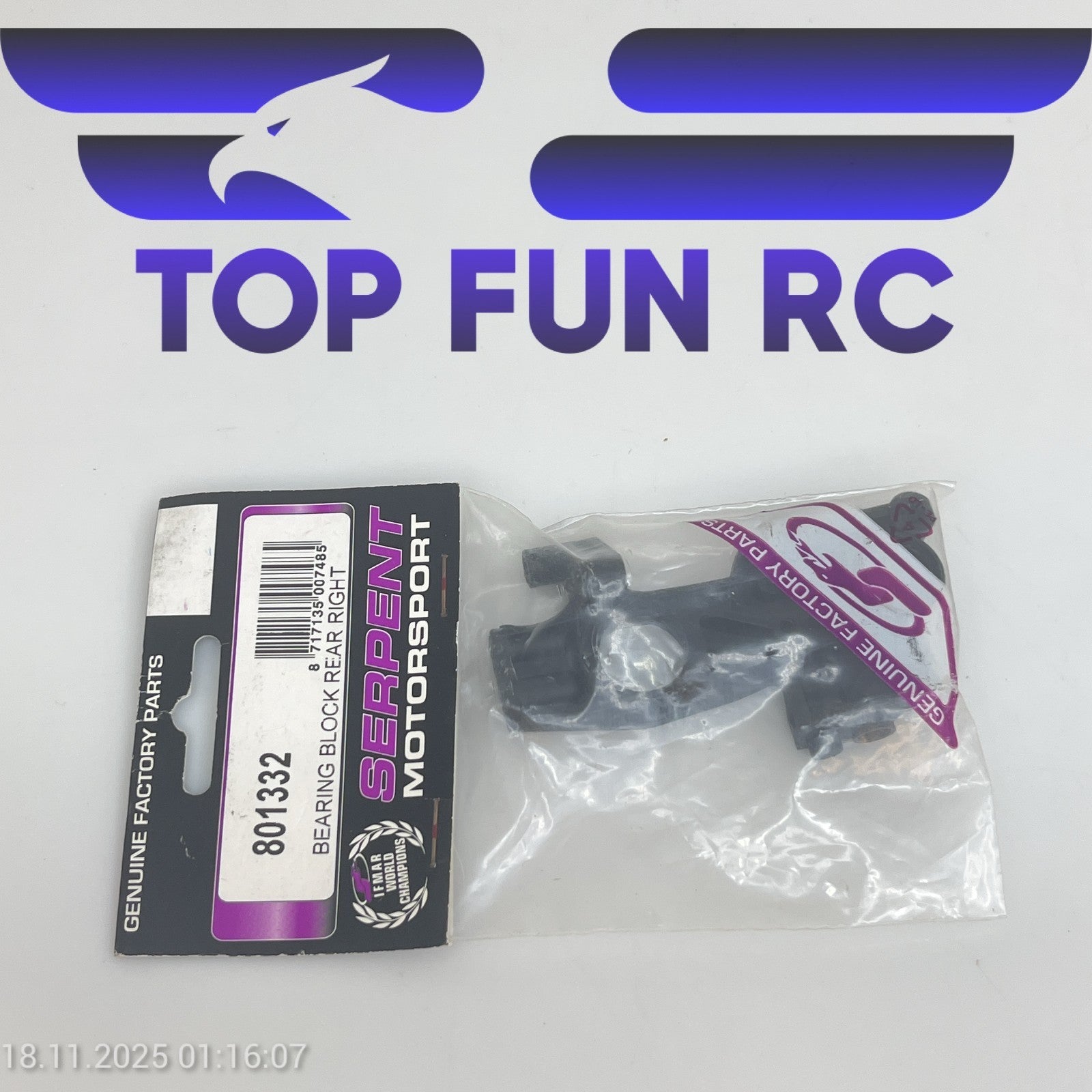 SERPENT MOTORSPORT 801332 BEARING BLOCK REAR RIGHT FOR 705 & 835 1/10 SCALE CAR