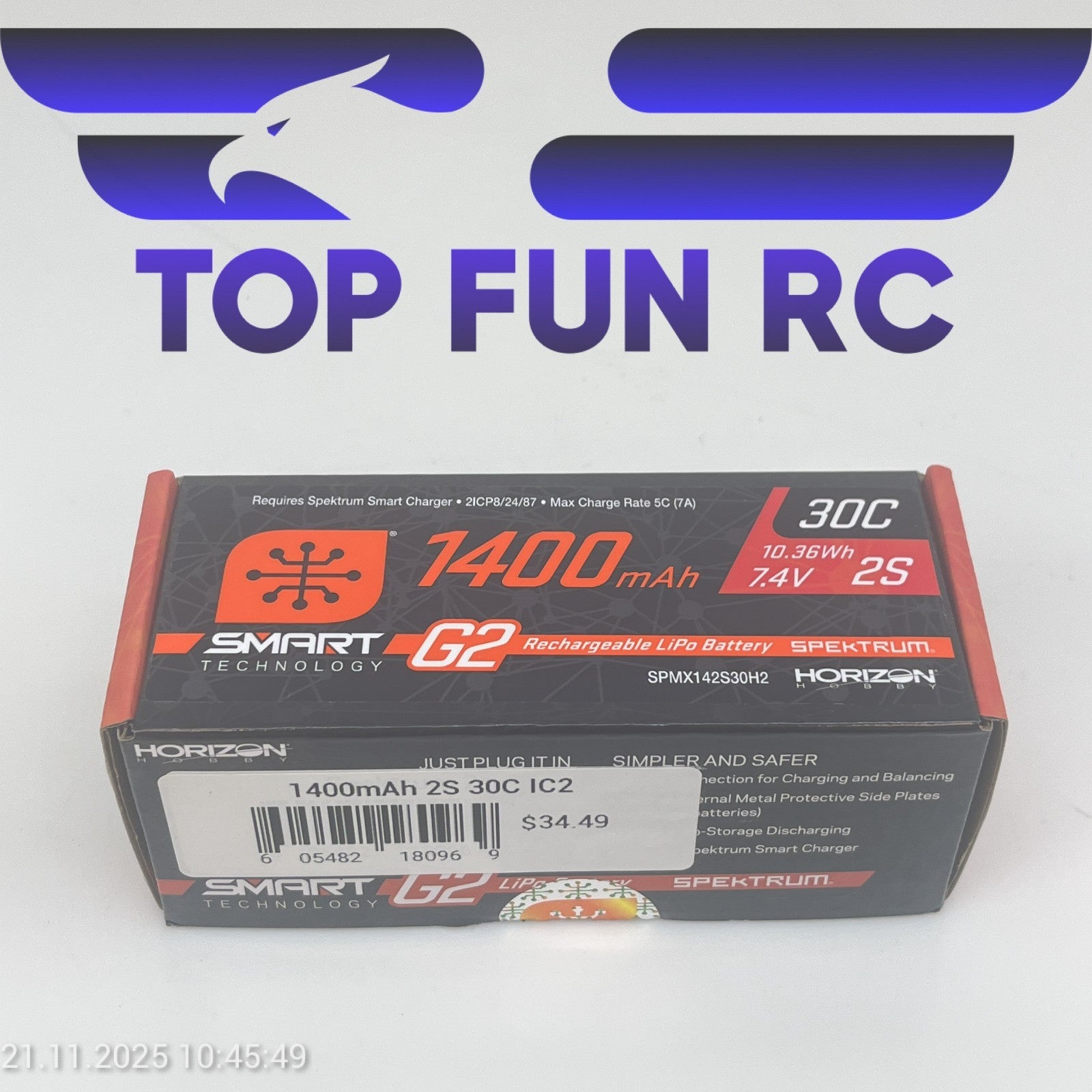 SPEKTRUM 1400mAh 30C 10.36Wh 7.4V 2S LIPO RC BATTERY FOR LOSI NASCAR OPEN BOX