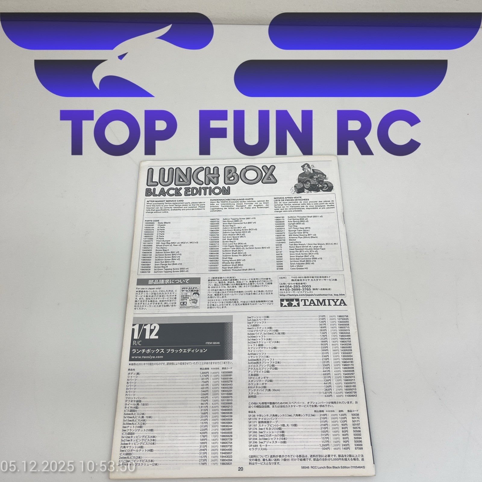 TAMIYA LUNCH BOX BLACK EDITION 1/12 SCALE MONSTER VAN INSTRUCTION MANUAL
