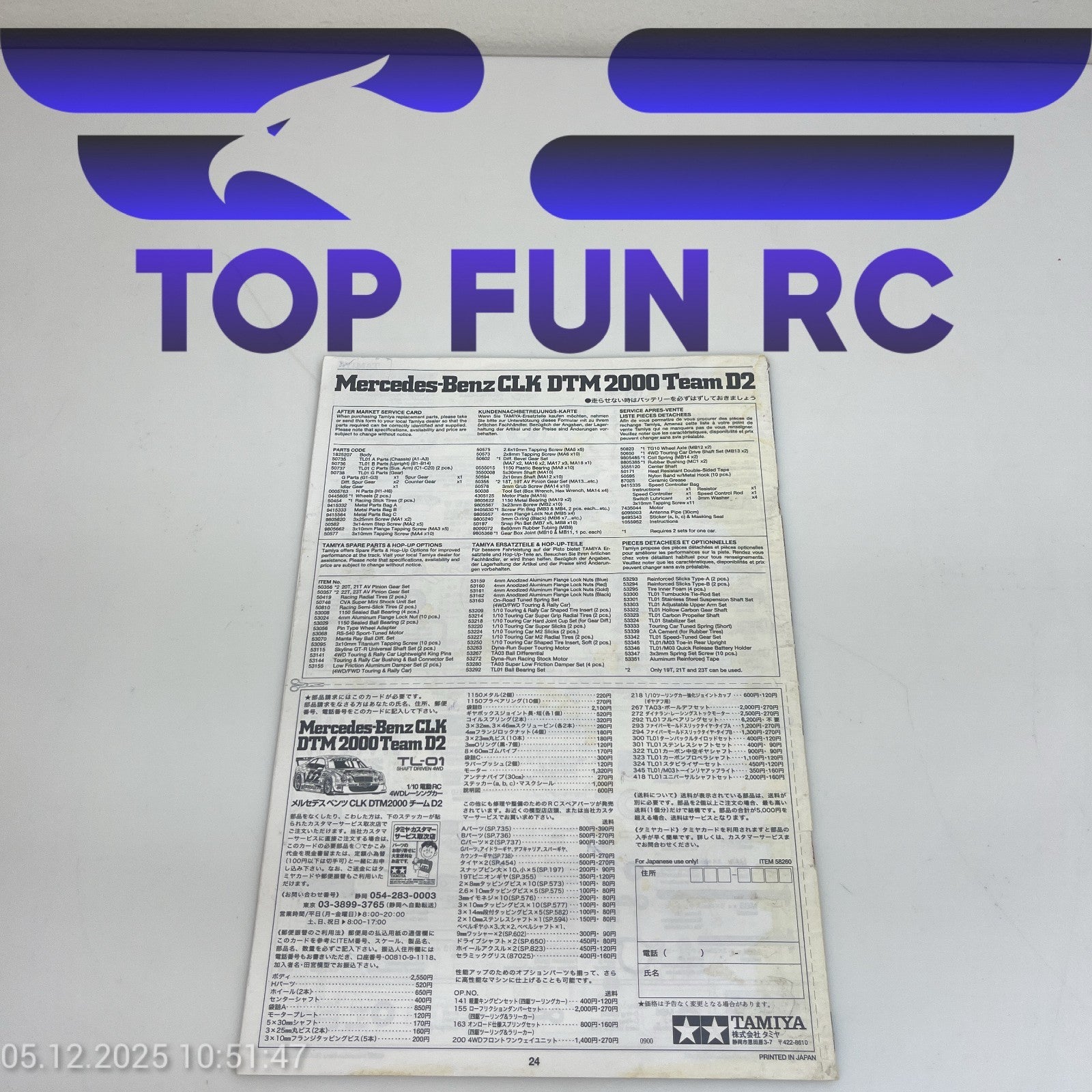 TAMIYA MERCEDES-BENZ CLK DTM 2000 TEAM D2 INSTRUCTION MANUAL
