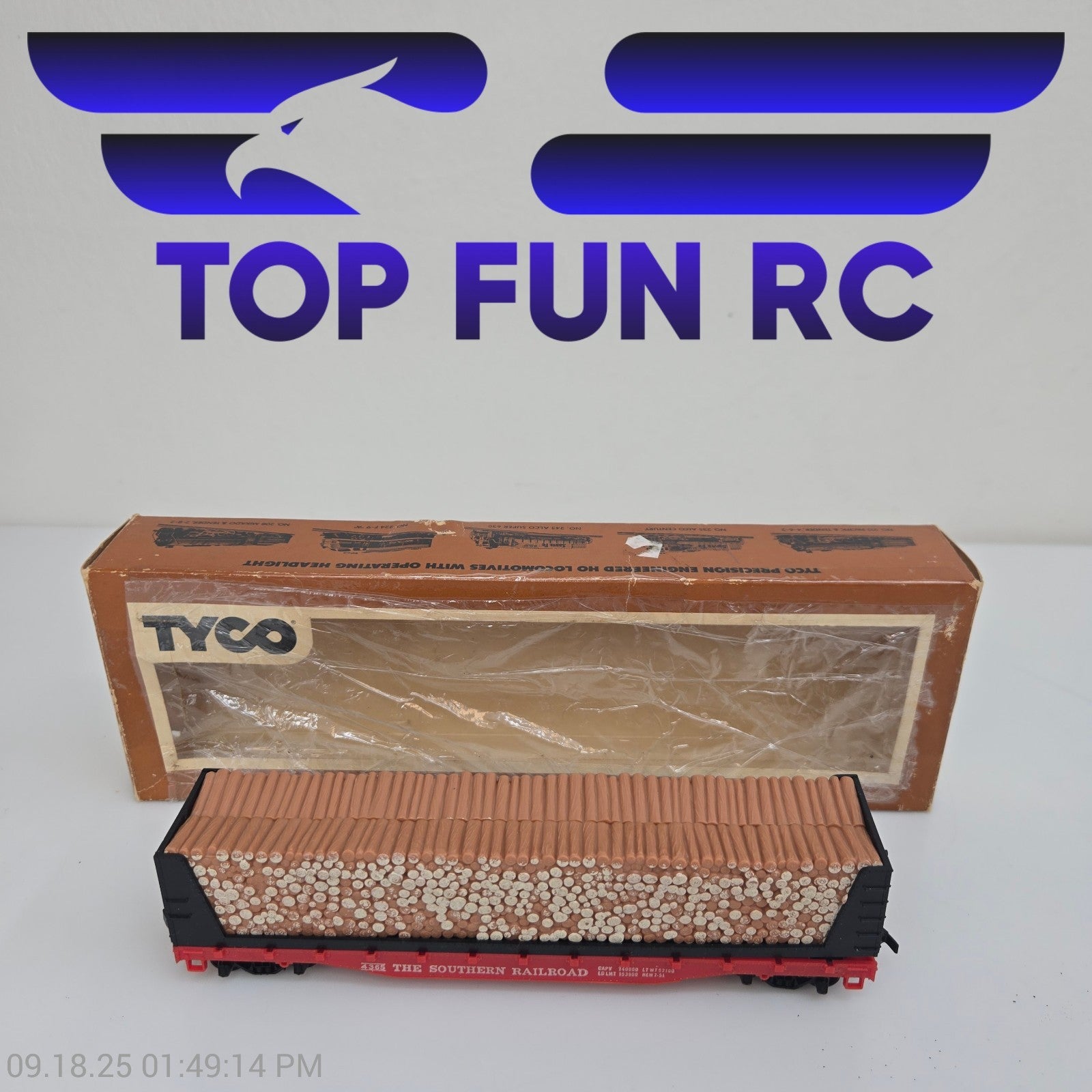 Tyco HO Gauge 50' Flat Car w/ Pulpwood Load Southern Railway 334A 4365 With Box