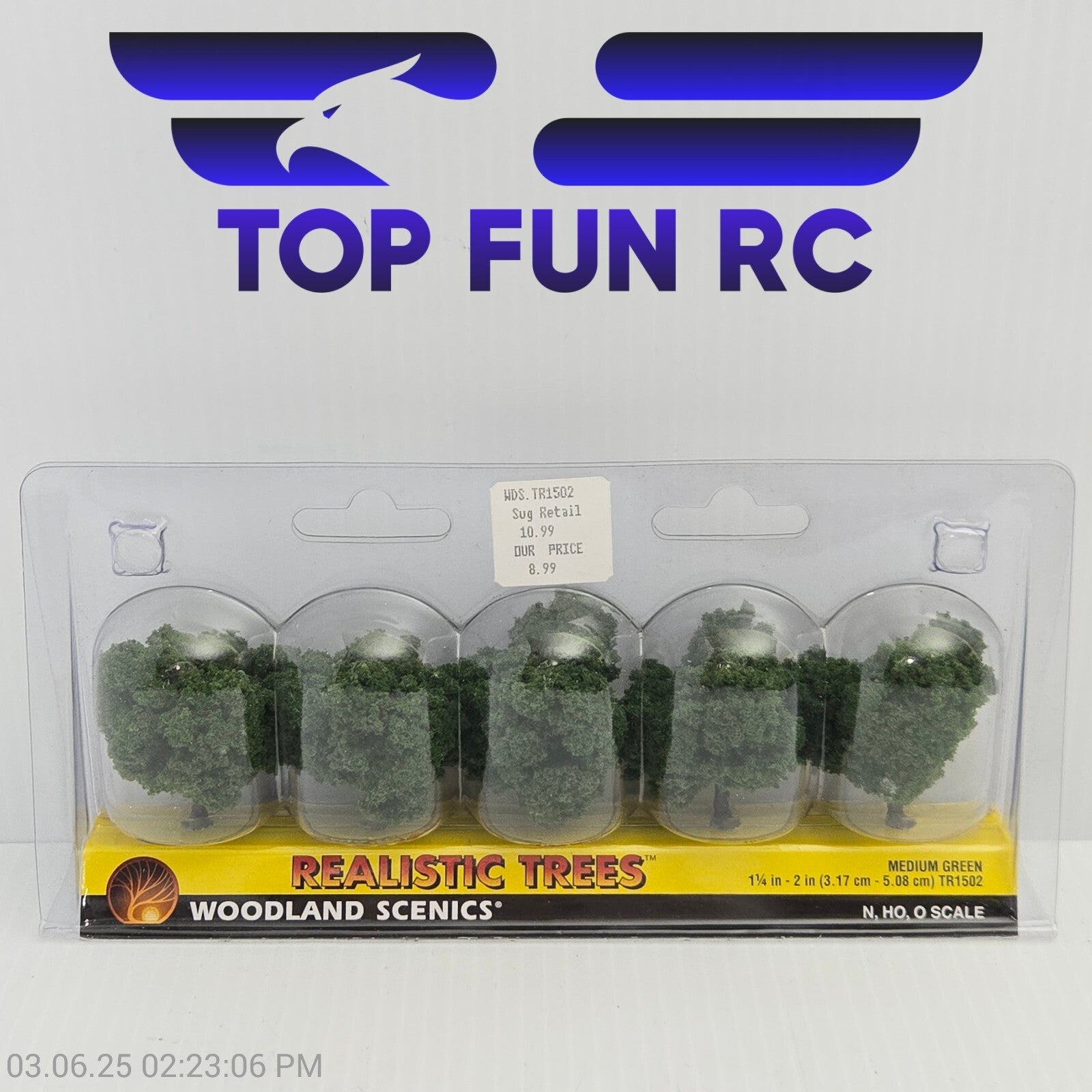 Woodland Scenics ~ Medium Green Trees ~ 1-1/4" to 2" ~ 5 Pieces ~ TR1502