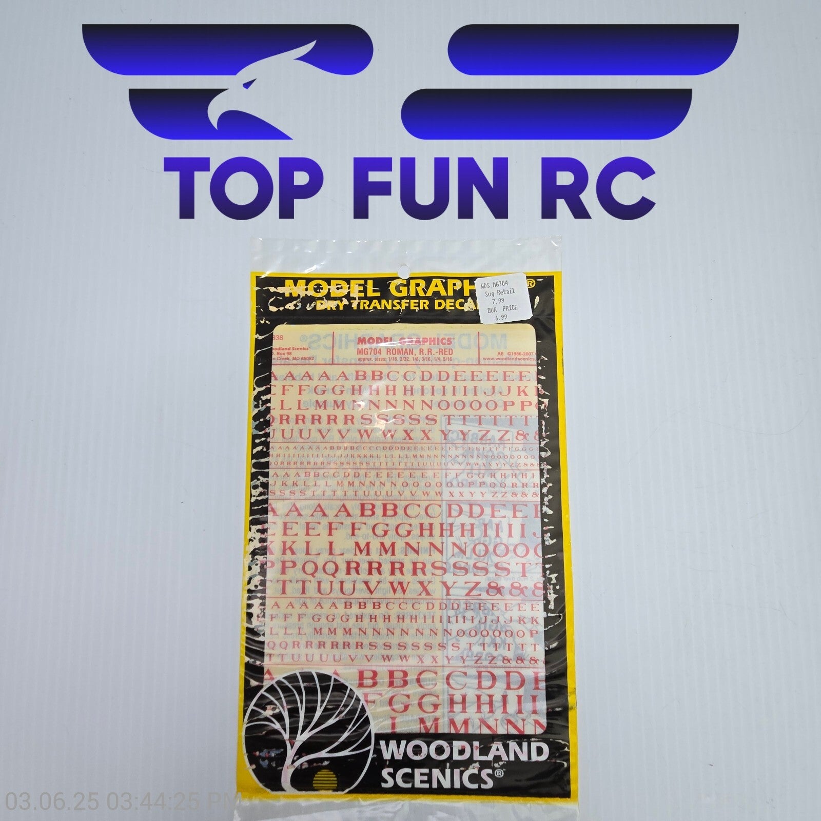 Woodland Scenics MG704 Red Roman RR Letters Dry Transfer Decals 1/16-5/16