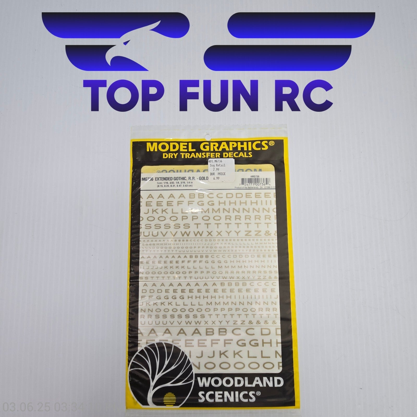 Woodland Scenics MG736 Extended Gothic, R.R. - Gold Dry Transfer Decal Train