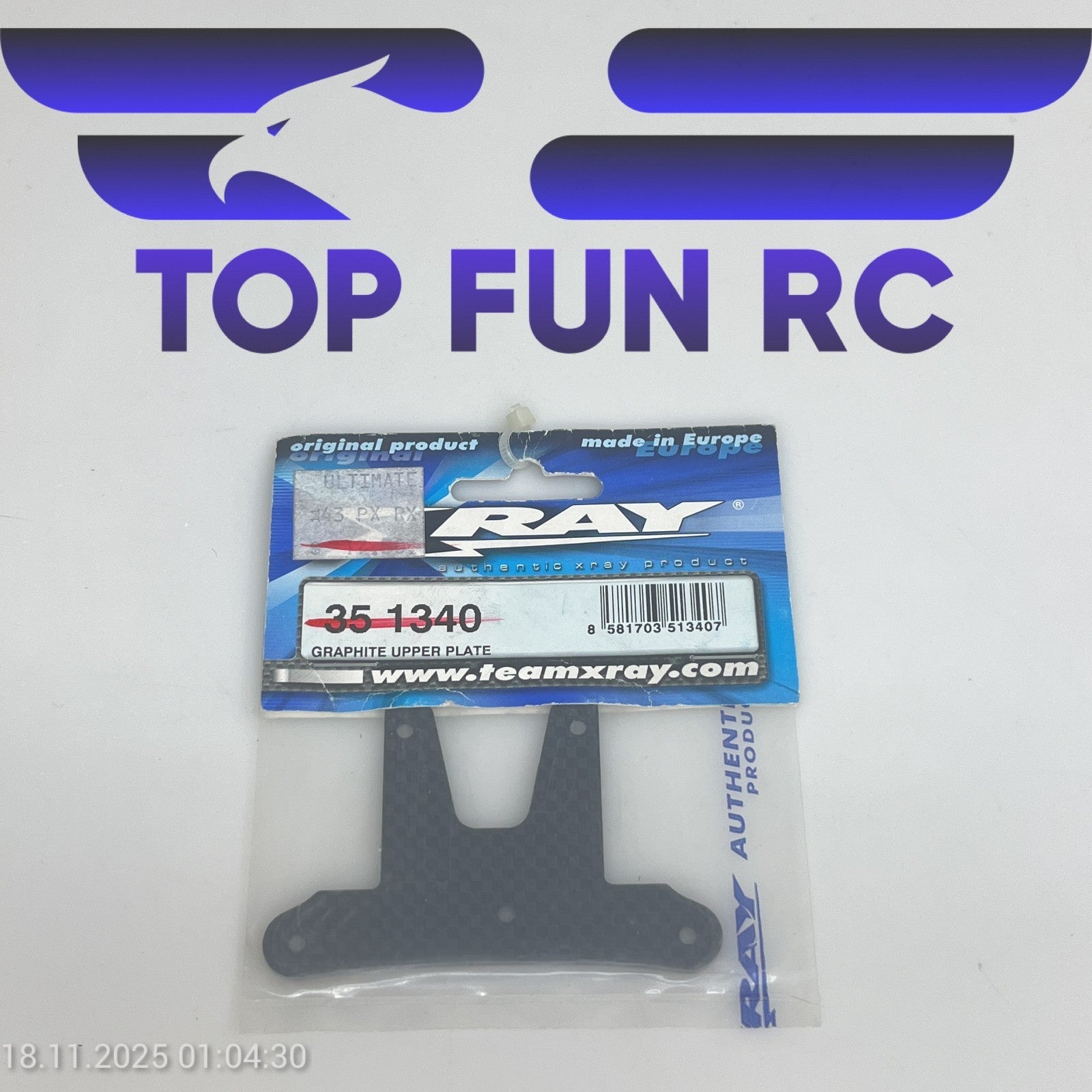 XRAY 351340 GRAPHITE UPPER PLATE FOR XRAY XB8 CAR 1/8 SCALE BUGGY